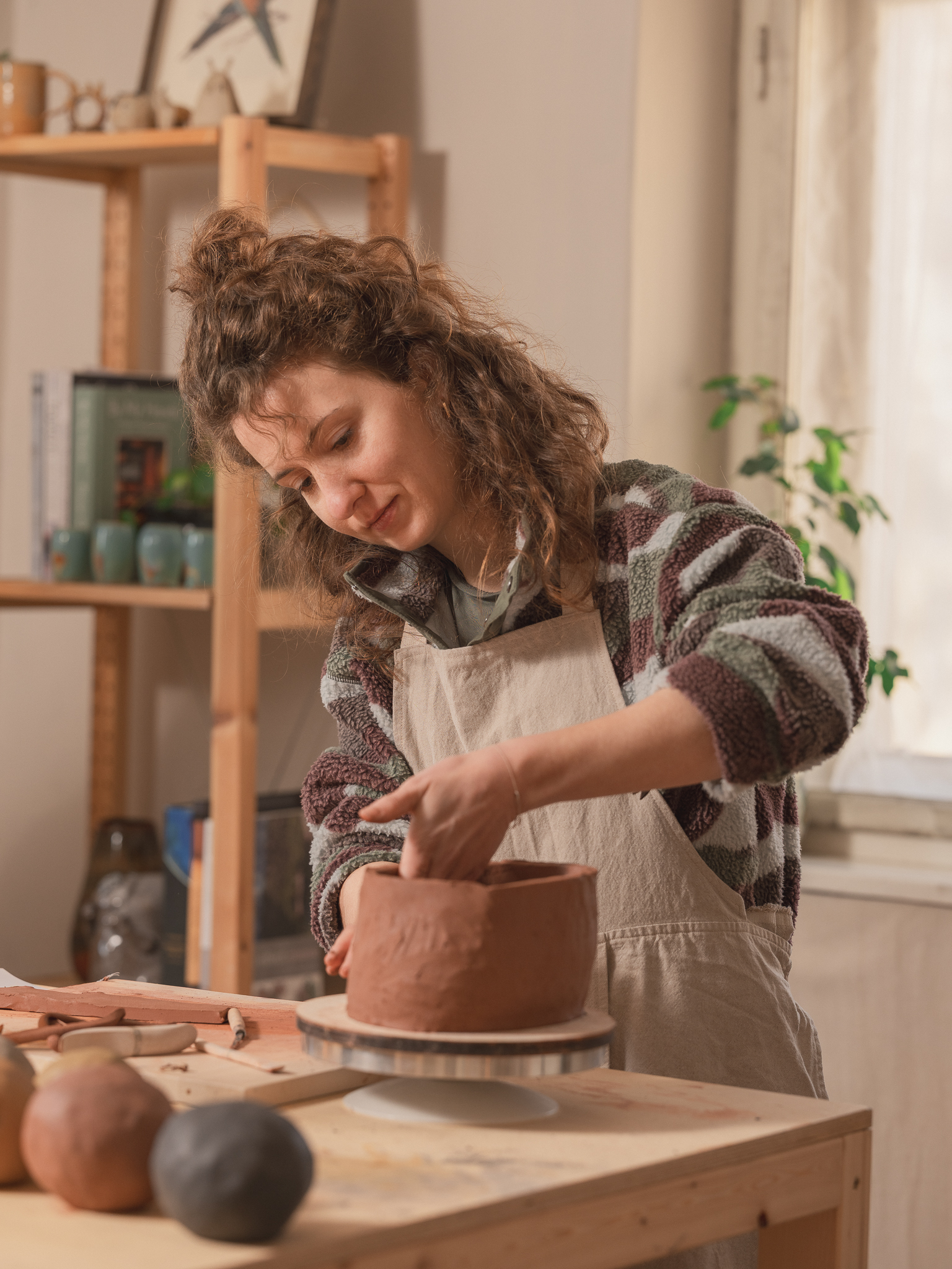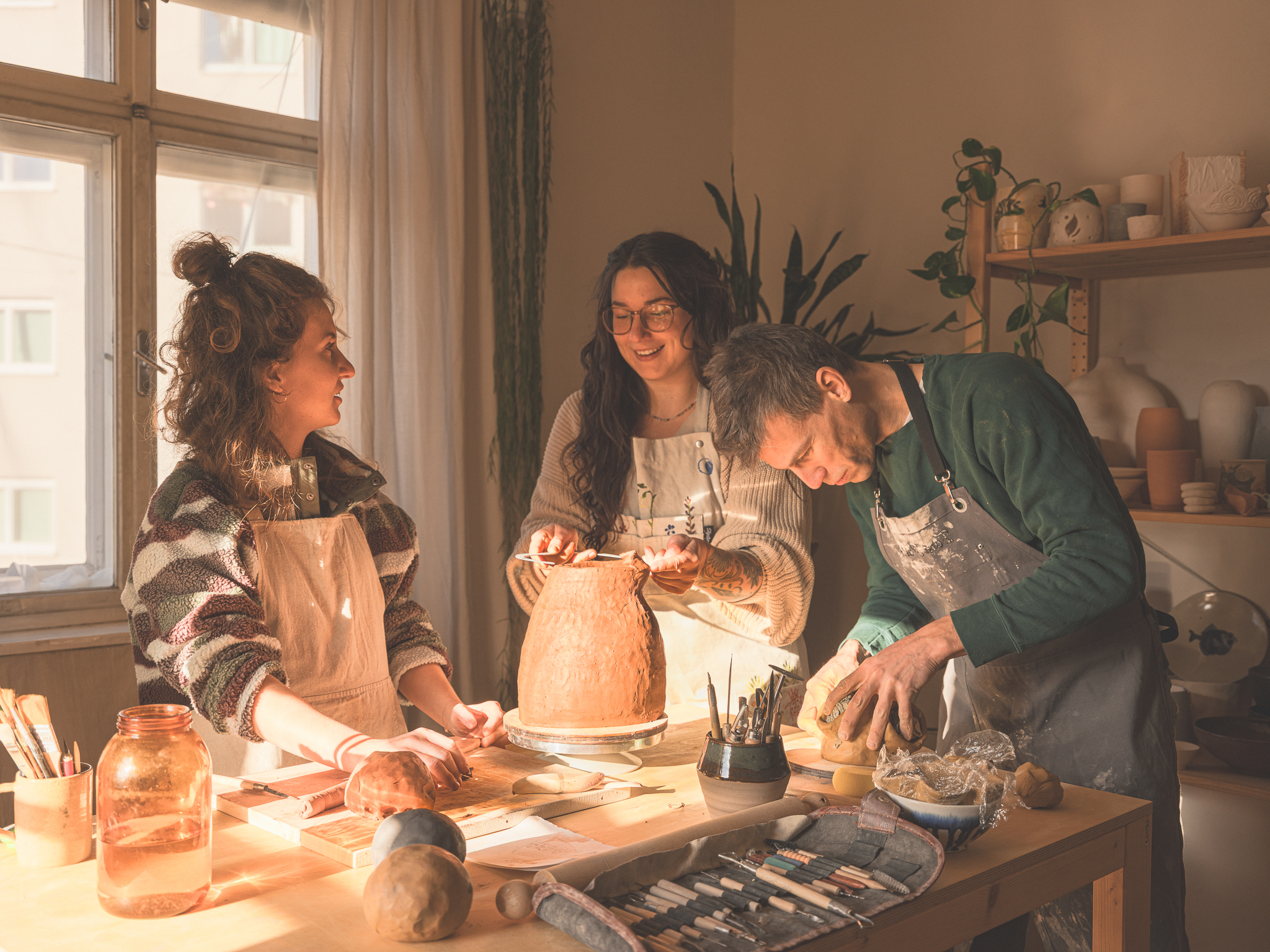 Schaffung eines professionell ausgestatteten Studios, mit gemeinschaftlich nutzbaren Arbeitsplätzen, Drehscheiben, Brennöfen und Werkzeugen. Auf diese Weise wollen wir das Arbeiten mit Ton für Menschen mit unterschiedlichen Erfahrungsstufen zugänglich machen und freies, eigenständiges Arbeiten ermöglichen. - Entwicklung eines vielfältigen Kursangebots