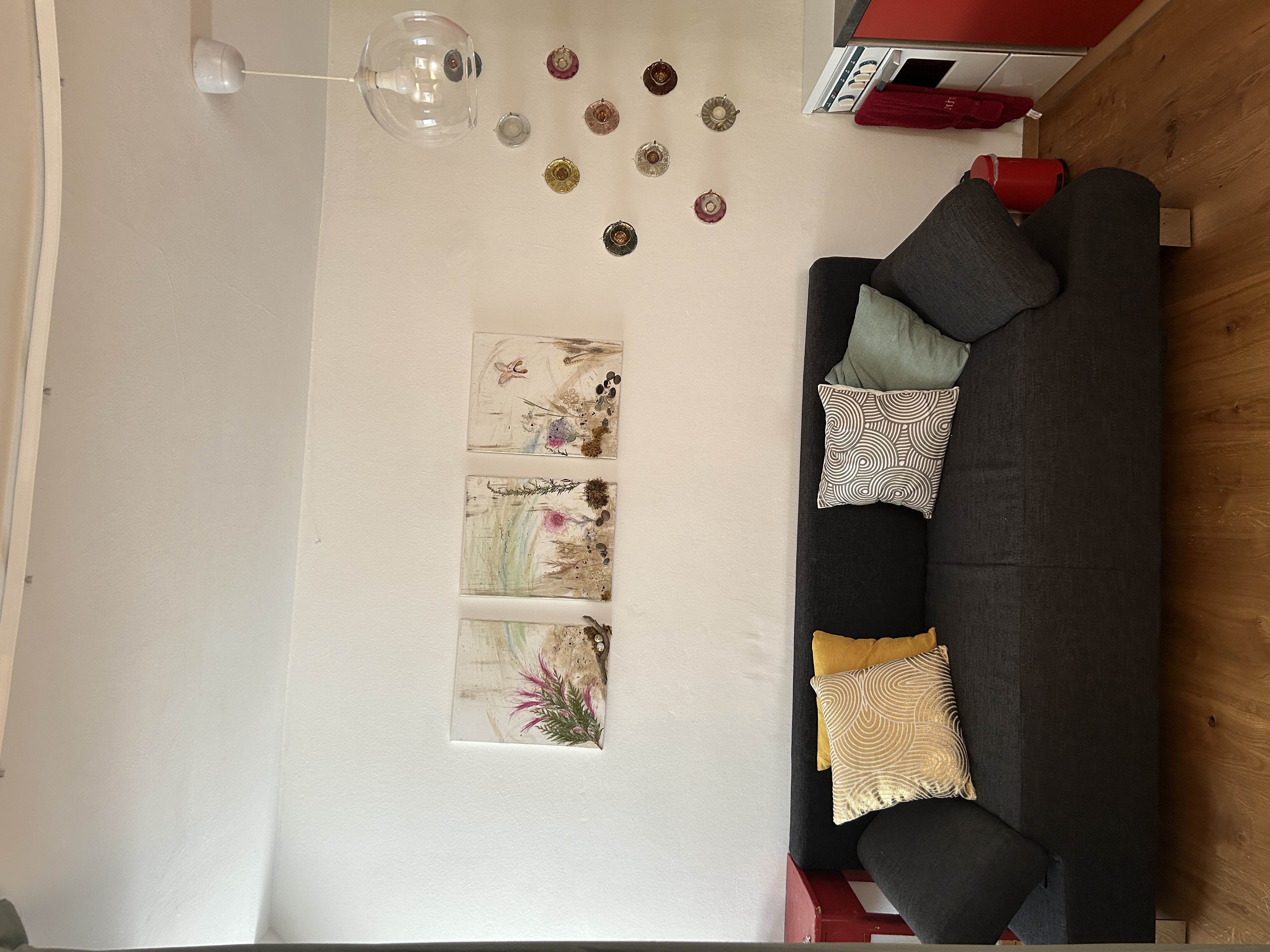 Im Studio Herzensraum sollen viele Herzen schlagen. Es ist ein Ort der Verbindung und der Leidenschaften. Auf knapp 55 Quadratmeter wartet ein wunderbares Studio mit Eichenboden und Einbau-Ofen auf Dich. Mit einem schönem Eingangsbereich, einer gut ausgestatteten Küche mit Couch und Essecke und einem Bad mit Fußbodenheizung - alles, was Du für Dein Angebot brauchst.